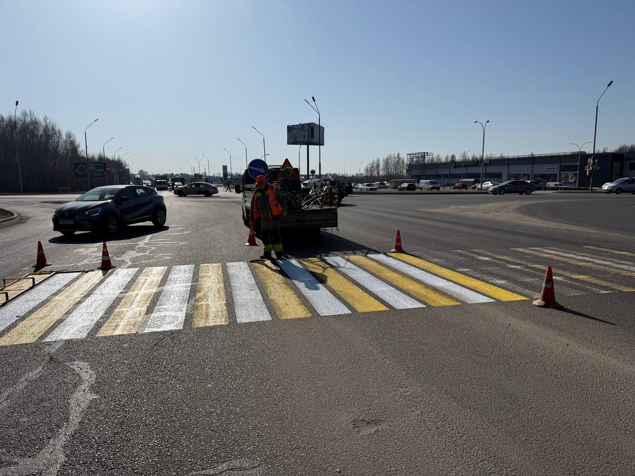 ❇️ Цёплае надвор'е дазволіла работнікам Дзяржаўнага прадпрыемства «СМЭП Брэсцкай вобласці» пачаць работы па абнаўленні дарожнай разметкі на вулічна-дарожнай сетцы горада Брэста.